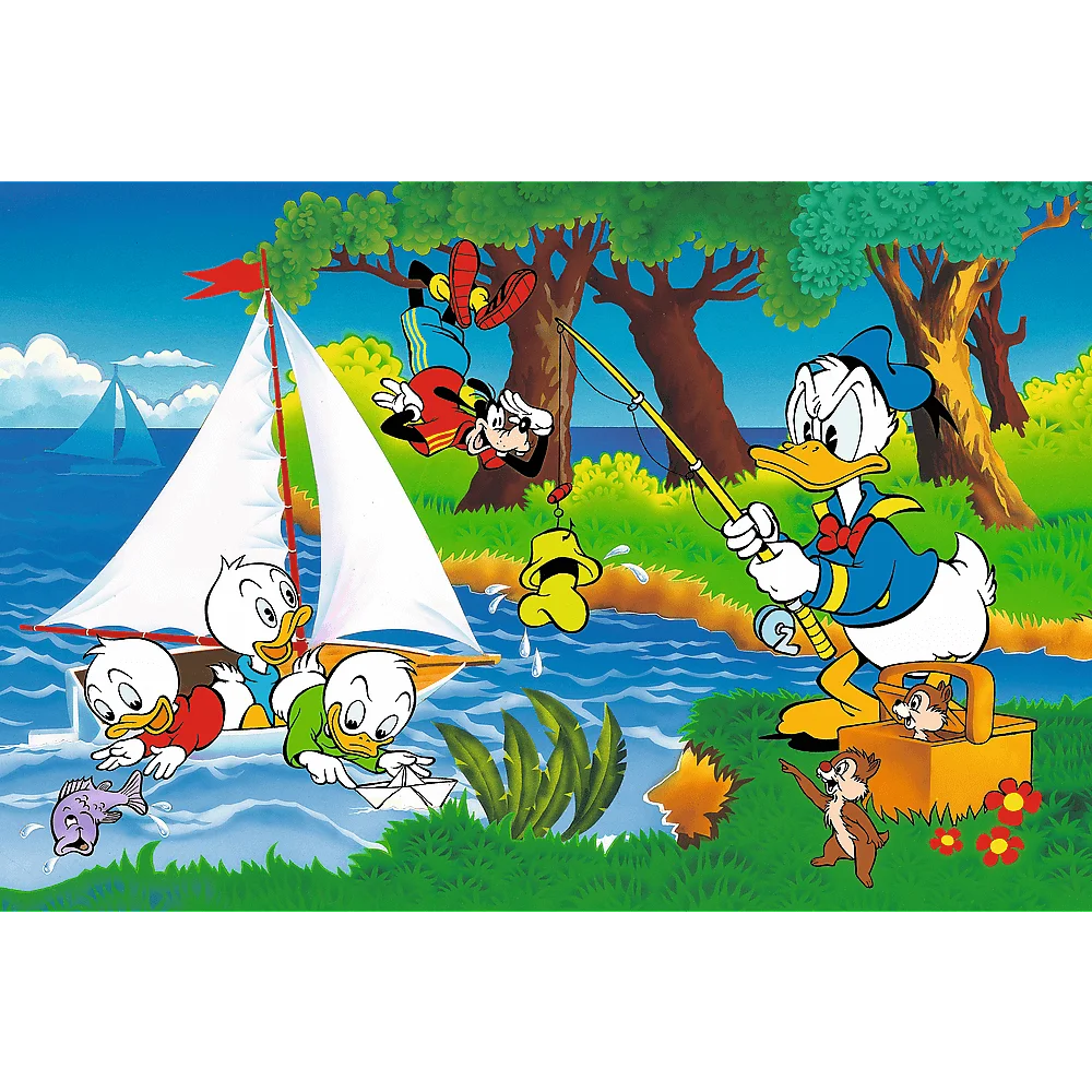 Przygoda nad jeziorem to puzzle składające się ze 160 elementów, które zachwycą małych fanów Kaczora Donalda. Wchodzą w skład jubileuszowej serii układanek na 40-lecie firmy. Po ich ułożeniu powstanie obrazek o wymiarach 410x275 mm.